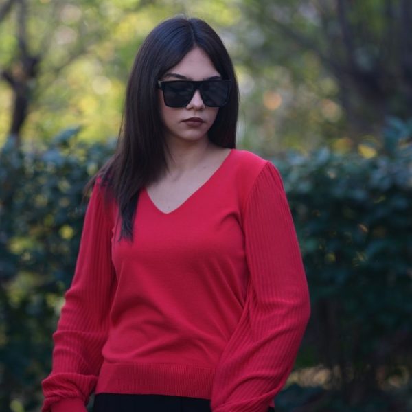 | Balon Kol Çizgili Yumoş Kazak, çizgi detayları ve balon kol tasarımıyla zarif bir görünüm sağlayan çok özel bir parçadır.
