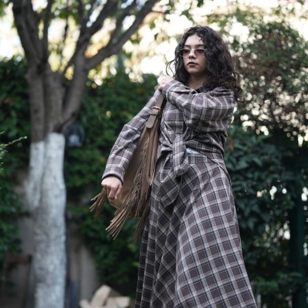 | Ekose Detaylı Verev Kloş Etek, oldukça şık bir kombin için tercih edilebilen, rahat ve işlevsel bir alt giyim ürünüdür.
